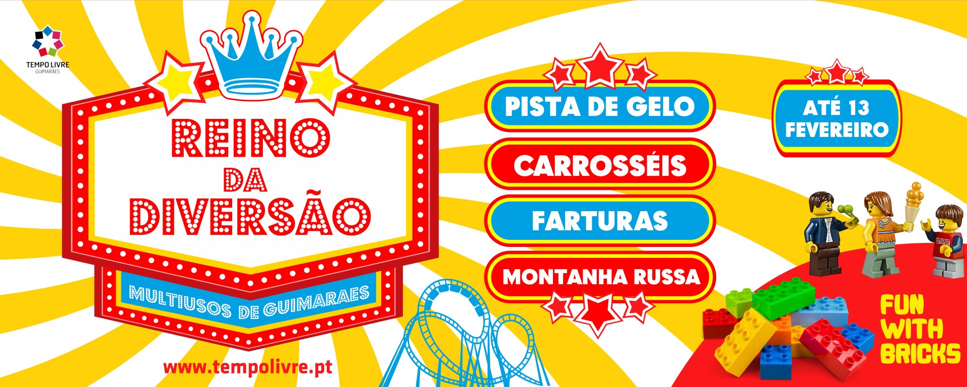 Além da tradicional pista de gelo, carrosséis e outros divertimentos, este ano haverá uma montanha russa instalada no interior do Multiusos de Guimarães e uma exposição de construções com peças Lego que incluirá a maior cidade candidata ao recorde do mundo. O “Fun with Bricks” é uma exposição de construções com peças Lego que inclui uma mega cidade, candidata ao recorde do mundo, construída por um só colecionador no mais longo diorama (mesa) de construções com peças Lego. Com uma zona de recreação para os mais novos, “Fun with Bricks” apresentará construções de monumentos e de naves da saga Star Wars, entre outros.